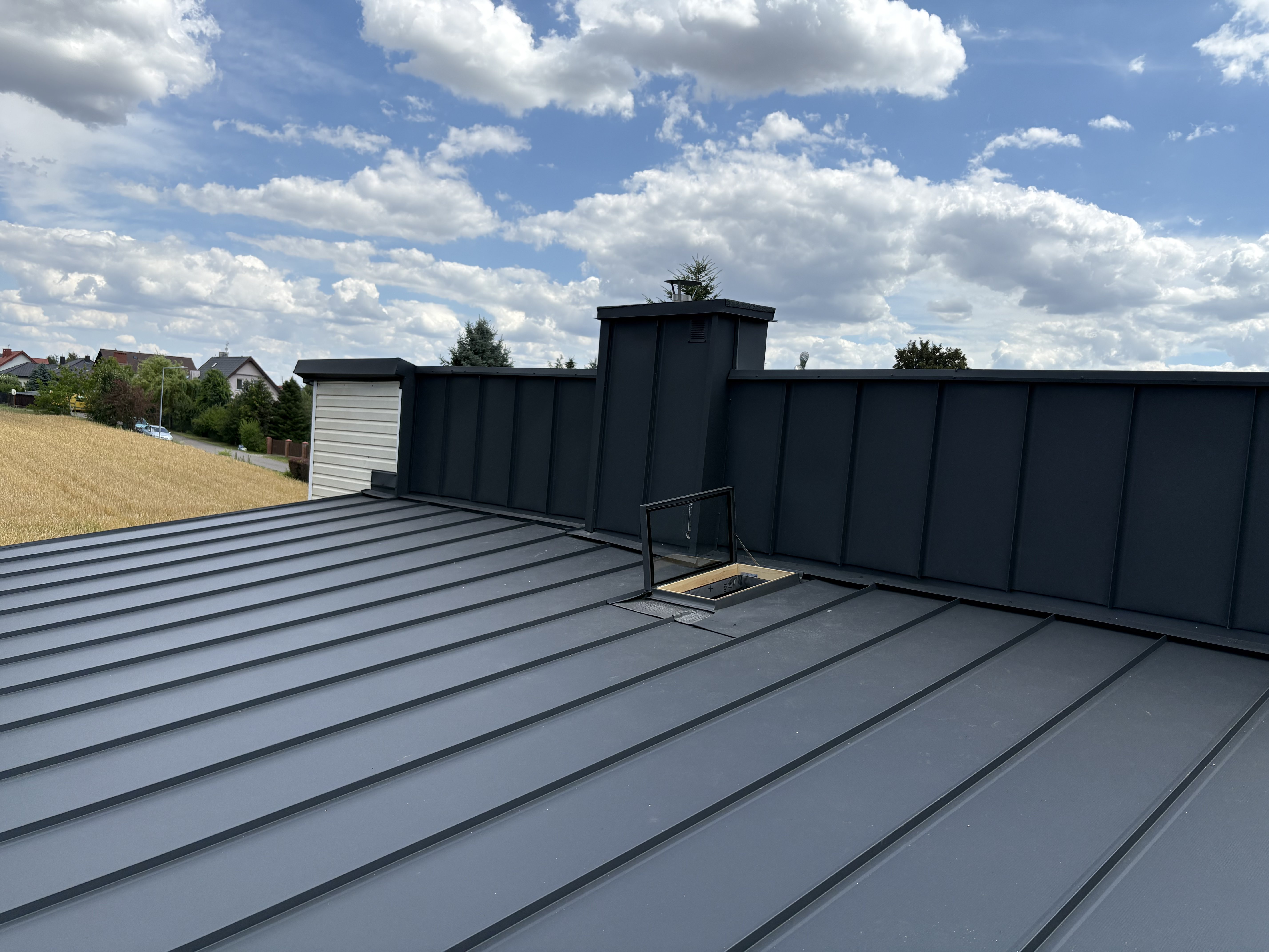 Precyzyjne obróbki przy kominach i krawędziach dachu.